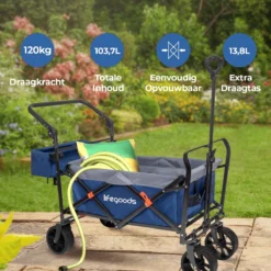 LifeGoods Bolderkar – Opvouwbaar – Tot 120KG – 103L – Extra Draagtas En Duwstang – Wasbaar Polyester – 98x45cm – Blauw/Grijs