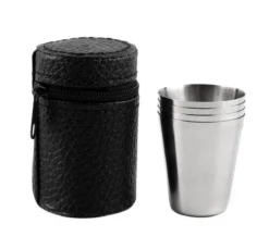 6x Rvs Shot Bekertjes – Borrelglaasjes – Thee/ Koffie Beker – Shotjes Met Leren Case – Bekers 30 ML