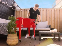 AXI Retro Cooler Rood – Koeler Met Wielen – 76L Inhoud – Koelbox Met Aftapkraan