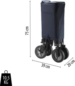De Campart Travel bolderwagen is zo compact op te bergen dat hij eenvoudig in je caravan of de kofferbak van je auto opgeborgen kan worden. Door het handige harmonicasysteem is de bolderwagen met slechts een handeling in te vouwen en ook weer uit te klappen. Gebruik eenvoudigweg de hendel onderin de wagen om in slechts enkele seconden de wagen op te vouwen tot 39 x 20 x 75 cm.