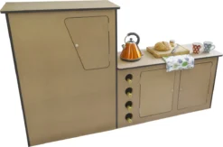 Camper Keuken MDF – Linkerkant EU – Inclusief Kledingstang + Wijnrek – Onbewerkt – Inbouw Kasten Inrichting Kampeerauto Caravan