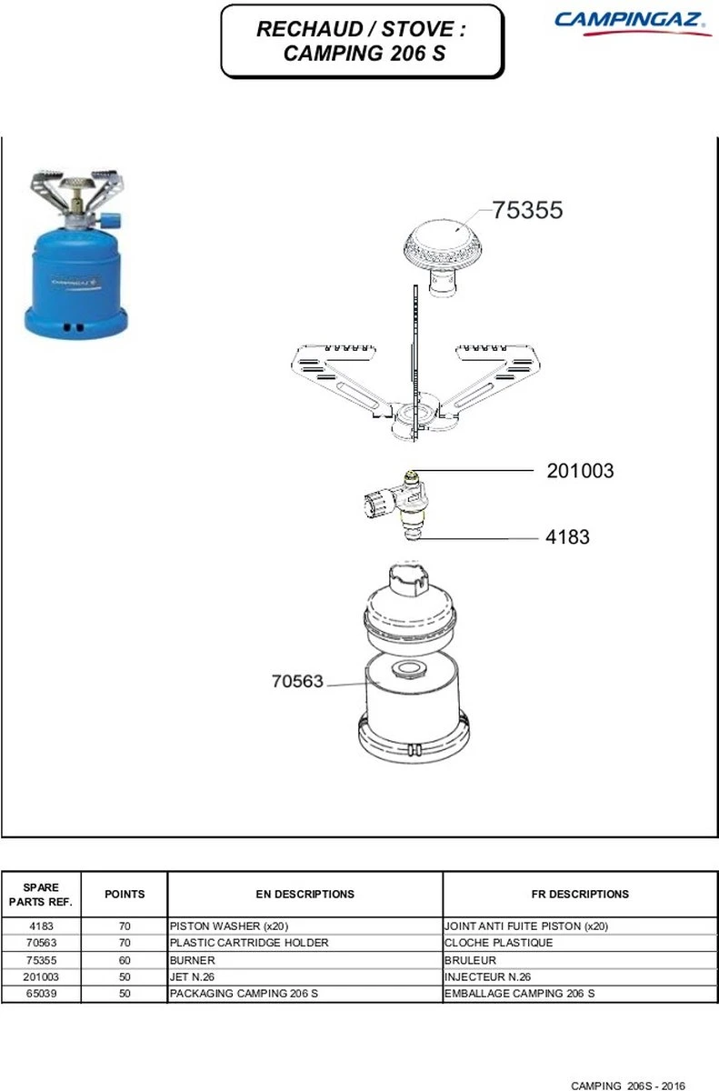 De Campingaz 206 is voorzien van een kunststof behuizing, een veilige cartouchehouder en vier ingebouwde, roestvrijstalen pansteunen met geïntegreerd windscherm.