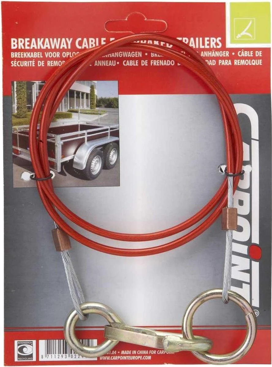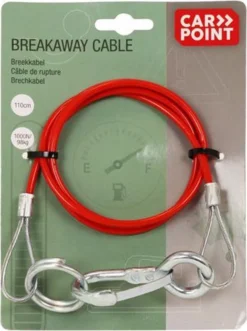 De Carpoint breekkabel tussen auto en caravan of aanhanger zorgt er voor dat de rem wordt aangetrokken als de, geremde, caravan of aanhanger los breekt van de auto. Nadat de handrem is aangetrokken zal de kabel breken.