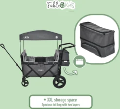 Alles inbegrepen! Als je met kinderen reist, heb je meestal de helft van het huishouden bij je. Om deze reden heeft LEO een XXL achtertas met 2 kamers en een ruim interieur.