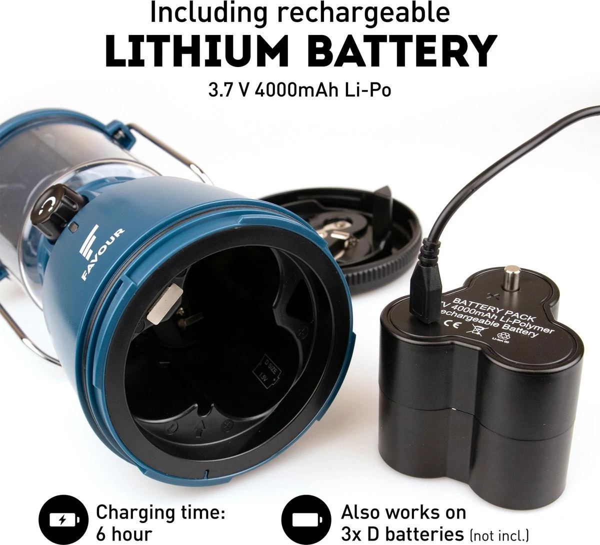 Wil je graag kampeerverlichting aan een balk of in de tent ophangen? Geen probleem, want er zijn twee ophangmogelijkheden. De campinglantaarn heeft een uitklapbare beugel en aan de onderkant van de lantaarn zit een geïntegreerde haak. Tip voor liefhebbers van direct licht: draai eenvoudigweg de lampenkap eraf. Daardoor verbeterd de lichtopbrengst waardoor de gehele tent verlicht kan worden.