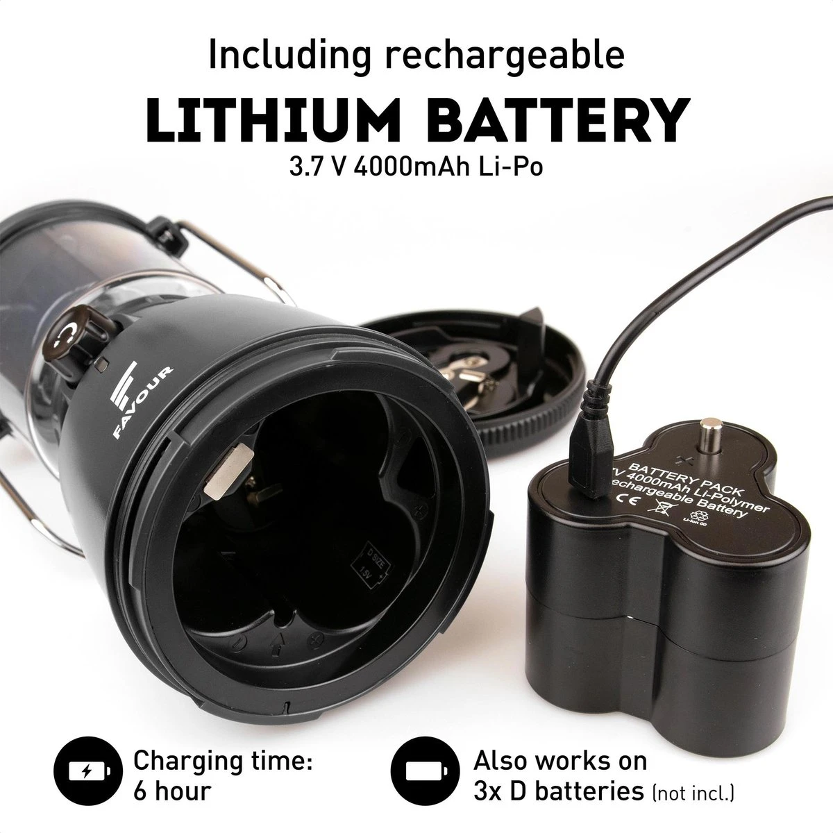 Favour L0818 Retro Camping Lamp Oplaadbaar LED, 320 Lumen, IP64 Waterdicht, Draagbare Kampeerlamp, Tentlamp, Acculamp, Traploos Dimbare Lamp Incl. Kaarslicht-modus, Zwart