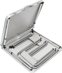 Het krijgt geen LIGHTER: De complete aluminium tafelset weegt slechts 7,5 kg! Het bevat 4 klapstoelen en een opvouwbare tafel – in hoogte verstelbaar in 3 stappen. Een must voor elke camper, want als kampeerder bespaart u enorm op uw laadvermogen