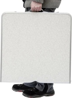EENVOUDIGE DESIGN: Afmetingen tafel gemonteerd (LxBxH): ca. 120x60x55-62-70 cm – Tafel ingeklapt (LxBxH): ca. 60x60x6 cm – Stoel gemonteerd (LxBxH): ca. 28x28x35 cm – Stoel ingeklapt (LxBxH): ca. 45x32x2 cm – Totaal gewicht: ca. 7,5 kg