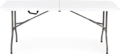 Het tafelblad is vrij ruim, meet 180 x 70 cm en is precies goed voor allerlei soorten evenementen, binnen of buiten. De poten zijn afgewerkt met rubberen voetjes, die de vloer beschermen tegen krassen en voorkomen dat de tafel wegglijdt op natte oppervlakken.