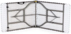 Geniet van uw maaltijden in stijl met onze inklapbare klaptafel! Of je nu een feestje geeft of gewoon op zoek bent naar een ruimtebesparende oplossing, met deze opklaptafel zit je goed. Met zijn stevige structuur en 100% waterdicht HDPE-tafelblad biedt hij gemakkelijk plaats aan acht personen en kan hij binnen enkele seconden transformeren van minimale ruimte innemen tot voldoende zitplaatsen voor iedereen.