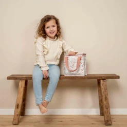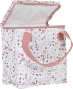 Dit leuke koeltasje met Flowers & Butterflies print is gemaakt van stevig canvas. De binnenkant is isolerend, waardoor hapjes en drankjes lekker koel blijven. Ideaal voor een lunch op school én voor onderweg! De koeltas is 21,5 x 20 x 12 cm. Genoeg ruimte voor een lunchbox, stuk fruit en een flesje of pakje drinken dus. In het vakje aan de voorkant kan je nog een koekje kwijt en met de hengsels neemt je kindje de koeltas gemakkelijk mee.