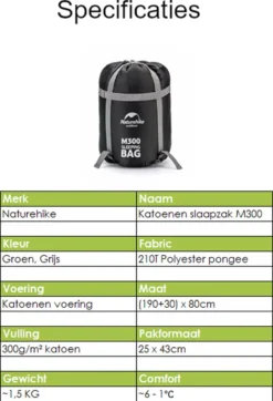 Op zoek naar een lichtgewicht katoenen slaapzak die jou warm & comfortabel houdt, óók gedurende de koudere nachten? Kies dan voor de M300 slaapzak van Naturehike!