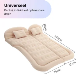 Met dit comfortabele autoluchtbed kunt u zorgeloos slapen tijdens het reizen. Dankzij de individueel op te blazen componenten kan het luchtbed op de achterbank worden gebruikt, maar ook volledig uitgespreid worden wanneer de achterbank wordt platgelegd. Ook voor kleine auto’s is het luchtbed hierdoor geschikt.