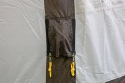 Let op! In tegenstelling tot de foto’s is de achterzijde van de tent geheel bruin, zonder de achterste twee grijze vlakken.
