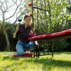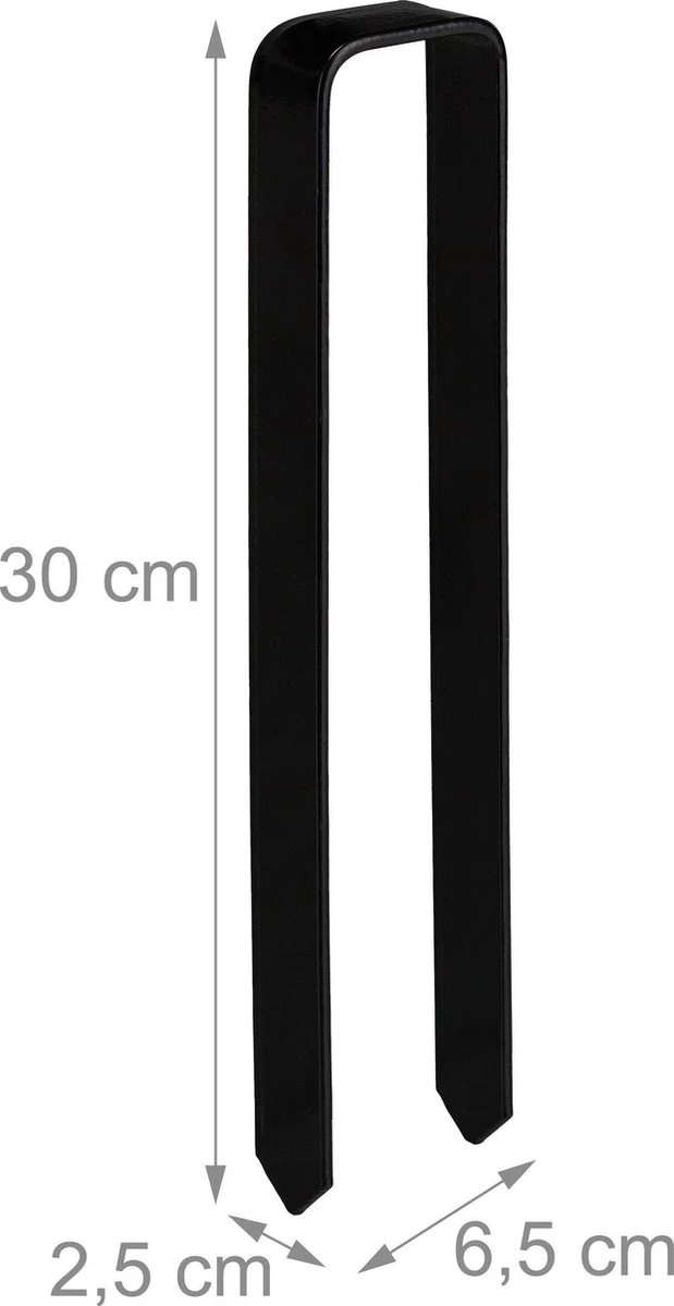 Gebruik de 4 grote grondankers om je rozenboog of plantensteun vast te zetten in de grond. Plaats de ankers over het frame van de plantensteun en sla de u-vormige haring met behulp van een rubberen hamer de grond in. De metalen haringen hebben lengte van 30 cm en kunnen dus diep de grond in worden geslagen. Dit zorgt ervoor dat je rozenboog ook als het waait stevig staat. De robuuste grondpennen zijn gemaakt van staal met poedercoating.