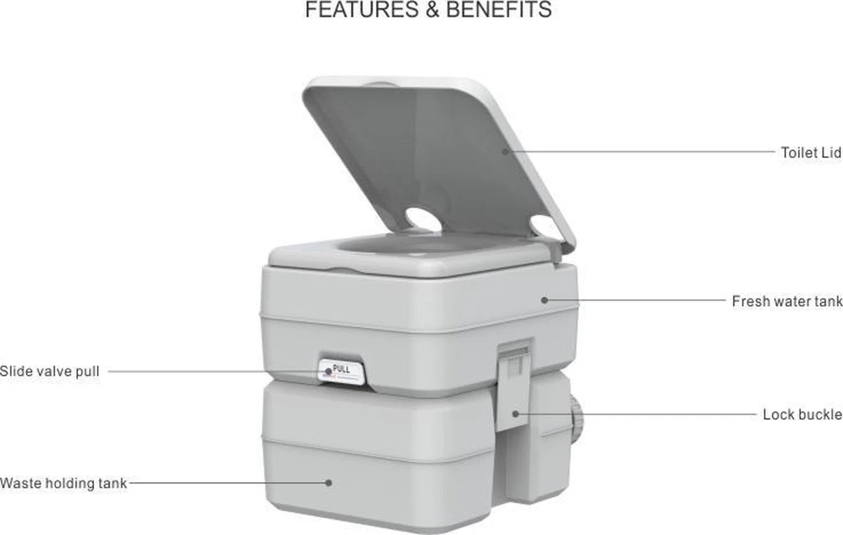 Met een portable toilet heeft u geen vaste wateraansluiting of elektra nodig.