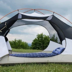 Een comfortabel en compact slaapmatje die makkelijk in je rugzak past? Blaas de TRVLMORE slaapmat in 2 minuten op met de geïntegreerde voetpomp en kruip in bed! Heerlijk comfortabel en gemaakt van zacht en stevig 40D nylon. De slaapmat is 6 cm dik en is afgewerkt met een vochtbestendige TPU coating. Het hoofdkussen heeft een ideale hoogte voor je nek. Het honingraat ontwerp houdt je lichaamswarmte goed vast. Zo kun je er de volgende dag weer helemaal tegenaan!