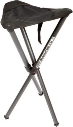 Aluminium driepoots vissersstoeltje van hoge kwaliteit. Extreem compact door de telescopische poten. Voorzien van een nylon zitting en rubber stoeldoppen. In twee hoogtes te verstellen. Afmetingen: zithoogte 32,5cm en maximale zithoogte 60cm. Gewicht: 725 gram, maximaal draagvermogen: 175kg. Kleur: antraciet.