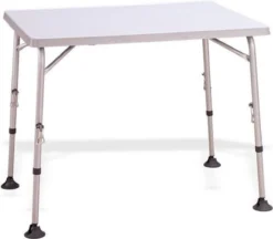 Op zoek naar een campingtafel voor twee tot vier personen? Maak dan kennis met de Westfield Smart Star, een tafel die tot wel 30 kg aan gewicht draagt. Je verstelt de poten gemakkelijk tussen 57 en 70,5 cm door ze in elkaar te schuiven. Zo kan je er altijd comfortabel met jouw benen onder zitten – uitgestrekt of rechtop. Het kunststof tafelblad is gemakkelijk schoon te maken. Het is niet alleen weer- en hittebestendig (het kan temperaturen aan tot wel 180 °C), maar ook bestand tegen krassen.