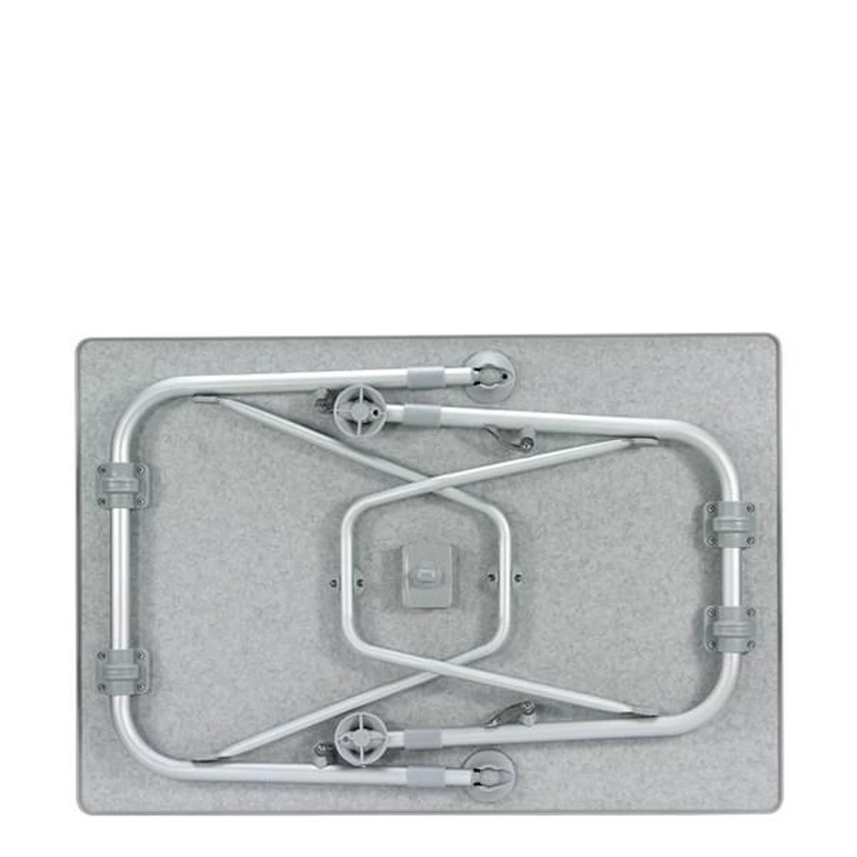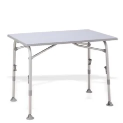 De afmetingen van de ingeklapte campingtafel zijn 90 x 70 x 4 cm (lxbxh). Dankzij de opvouwbare aluminium poten klap je hem gemakkelijk in en uit: ideaal voor gebruik op de camping of elders in de buitenlucht. Door de tafelpoten met brede voetjes aan de onderkant staat jouw campingtafel stevig en stabiel op iedere ondergrond. Dit product is plat opvouwbaar en is met een gewicht van 5,9 kg zeer licht, waardoor hij gemakkelijk mee te nemen is naar iedere (vakantie)bestemming.